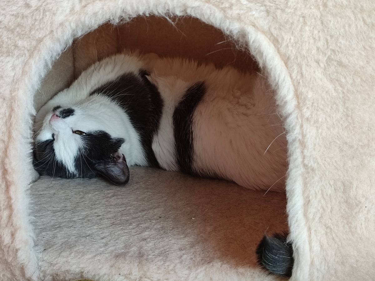 Понедельник. 12.05.25. Сегодняшний день посвящается отдыху от выходных)) Степень усталости демонстрирует Моняша Время десять утра, а кошь спит! Причем спит в домике, чтоб никто не помешал)) Я вчера тоже подустала немножко. Так немножко, что до двух часов ночи уснуть не могла. Это к вопросу, что гости в нашем доме редко, но метко. И это не жалоба, ни в коем случае. Я очень рада, что ребенок ко мне тянется, что мы снова можем видеться. Наши встречи, когда я жила в Петрозаводске с Тосей, Кира не помнит совсем. Ей было четыре года, но она Тосю по фото не вспомнила. А он у нас товарищ запоминающийся. Так что сейчас мы строим наши взаимоотношения на воспоминаниях о нашей встрече прошлым летом и моих посылках из Мурманска. Вчера смотрели кино, где главного героя звали Михаил. Ребенок оживился: моего папу тоже зовут Михаил, я Кира Михайловна! В этот момент даже глаза защипало... Вчера осталось вчера. Сегодня новый день. Солнышко и воздух прогреется до 13 градусов. Надо выйти погулять. Наше