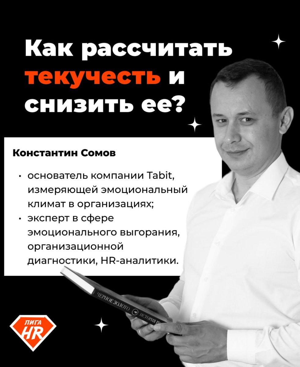 Как рассчитать текучесть кадров и снизить ее 🏃🏻♂️➡️ Небольшая текучесть может быть полезной, помогая бизнесу обновлять команду и находить более эффективных специалистов. Но если увольнений становится слишком много, компания сталкивается с лишними расходами, падением морального духа и ухудшением качества работы. Что может быть причиной повышения текучки? Как рассчитывать коэффициент текучести и как его снизить? Разбираемся вместе с Константином Сомовым – основателем компании Tabit, экспертом в сфере эмоционального выгорания, организационной диагностики, HR-аналитики. Один из эффективных способов сократить текучесть – проверка кандидатов на этапе найма. Человек вряд ли задержится в компании, если главная его мотивация – скопировать базу клиентов для собственного бизнеса или передача конфиденциальных данных конкурентам. Проверить финансовую и правовую чистоту соискателя поможет сервис от SpectrumData. Оставьте заявку на демо-доступ и получите 4 тестовые проверки*, чтобы оценить в