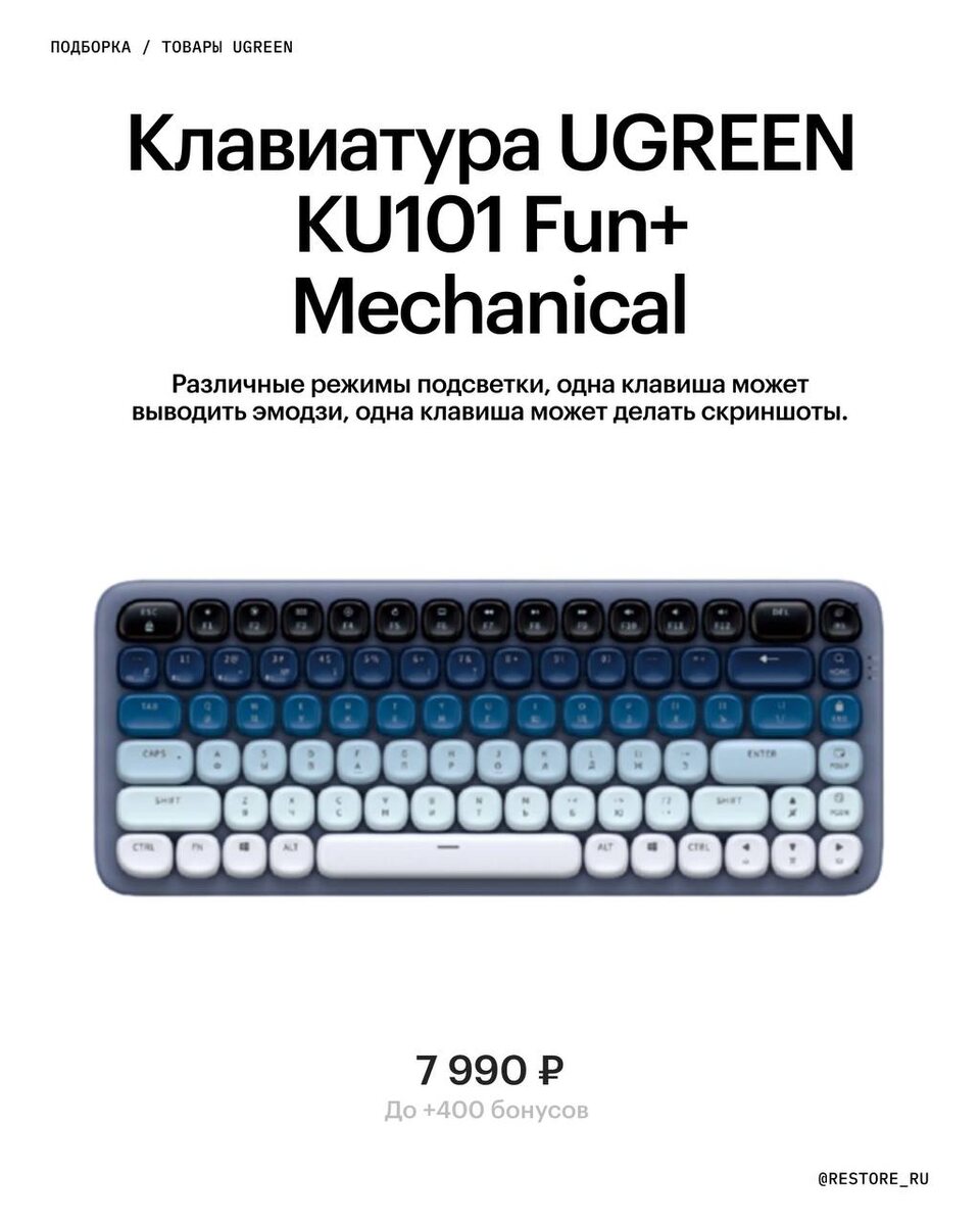 ➡️ Топ-5 аксессуаров UGREEN Подготовили для вас подборку лучших товаров бренда, которые облегчат ежедневные задачи и сделают жизнь проще и комфортнее. Выбирайте свой идеальный гаджет и прокачивайте рутину с restore:. 🌸Клавиатура 🌸Сетевое зарядное устройство 🌸Штатив-держатель 🌸Аккумулятор 25000 mAh 🌸Внешний аккумулятор 10000 mAh _______________________________________ Остались вопросы? Пишите в наш чат поддержки.