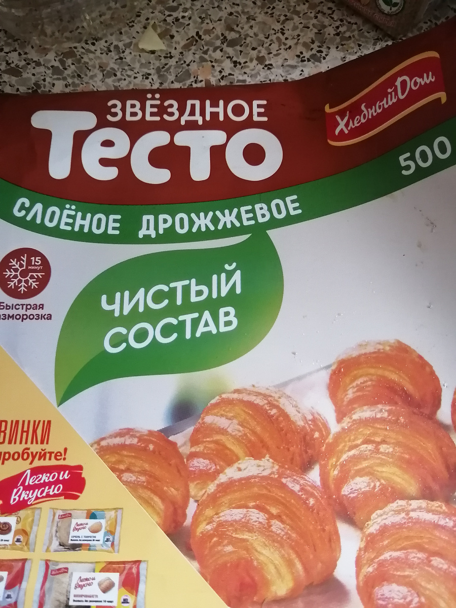 Пока природа проверяет нашу выносливость, демонстрирует все прелести своего мокрого и дождливо го характера со вспышками ночных заморозков, я решила побаловать своих домашних вкусняшками. Очень быстро и просто. Тесто беру готовое. (сама его делать не умею. Может быть для кого то это очень просто, пожалуйста можете сделать слоёное тесто сами, получится ещё вкуснее. Но это не для меня я купила готовое. Для начинки купила домашний творог. В него добавила немного сахарного песка (знаю, сейчас многие скажут, что сахар это вредно итд. Ну не добавляйте тогда. Насыпьте сахарозаменитель.) Ещё надо щепотку ванилина. Скажу сразу, что начинку можно брать совершенно любую. - Капуста - Картошка с грибами - Картошка с жареным луком и зеленью - вчерашняя гречка с сыром и грибами - рис с зеленью и яйцом Самое главное, чтобы начинка не была сильно влажная и из неё можно было сделать шарик (ну или выложить, уплотнив ложкой, придавая форму шарика) 1. Тесто (2 пласта это получится 8 порций) рпзморажи