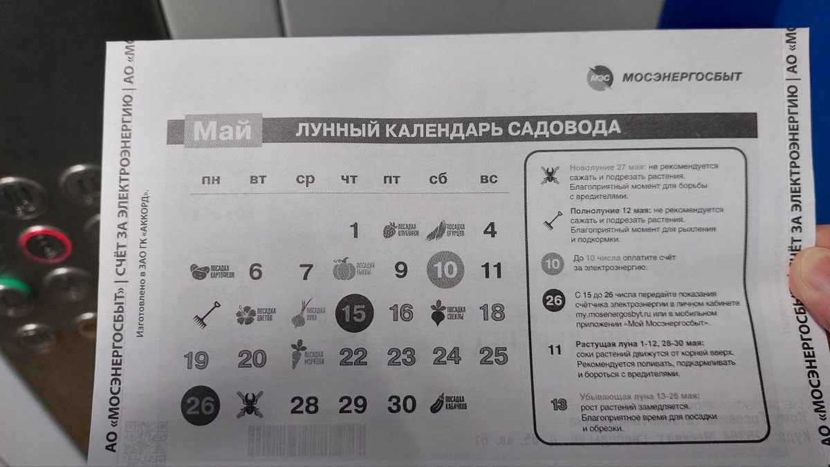 Пока депутаты пытаются запретить рекламу астрологии, Мосэнергосбыт размещает на квитанциях Лунный календарь садовода