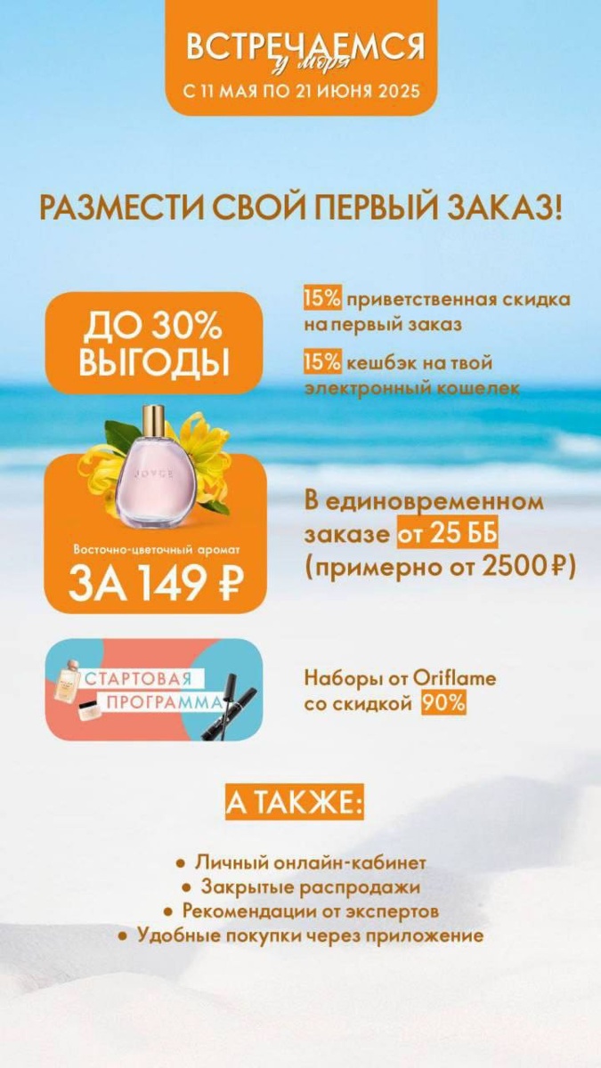 Смотрите только акций в этом каталоге Ты про все знаешь ? 📣Приветственная скидка 15% 📣Кешбэк 15% на следующий заказ 📣 За единовременный заказ от 25 бб - ПОДАРОК 🎁 СЮРПРИЗ за 99 р https://ori12top.ru/tebe-syurpriz-ulybnis/ 📣За единовременный заказ от 25бб -шикарный аромат за 149 р Joyce (вместо 1600 р) 📣Стартовая программа с выгодой 8500 р за заказ от 25ББ https://ori12top.ru/sp7-25/ 📣Доступ в закрытый канал Лидер 📣Продукт вместо платы за доставку или БЕСПЛАТНАЯ ДОСТАВКА за заказ от 50бб 📣Программы каталога и эксклюзивные предложения онлайн! 📣Приглашай и получай 10% рекомендационной скидки! 📣регистрация БЕСПЛАТНАЯ! Стать Бьюти Партнёром | Oriflame Cosmetics https://www.oriflame.ru/member-benefits?store=RU-annawagner 📣 Возможность выиграть сертификат для путешествия на 300 000 рублей и получить гарантированные подарки https://ori12top.ru/vstrechaemsya-u-morya/