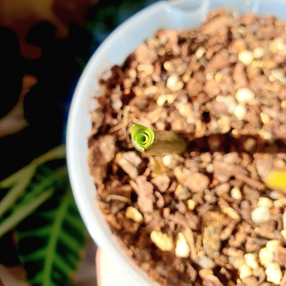 На фотке юный листочек Калатеи Орбифолии, которая наконец-то решила, что пора бы пожить 🤩