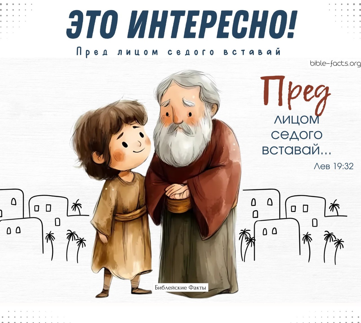 А вы знали, что в Библии Бог заповедал почитать старших? В Левите 19:32 говорится: "Пред лицом седого вставай и почитай лицо старца, и бойся Бога твоего. Я Господь." Этот стих напоминает нам о важности уважения к пожилым людям. В древнем Израиле, как и в нашей культуре, было важно не только проявлять акт уважение к старшему возрасту, но и видеть в этом выражение почтения к самому Богу. P.S. Бог ценит смирённое сердце. Это также помогает сохранять моральные и духовные ценности в обществе.