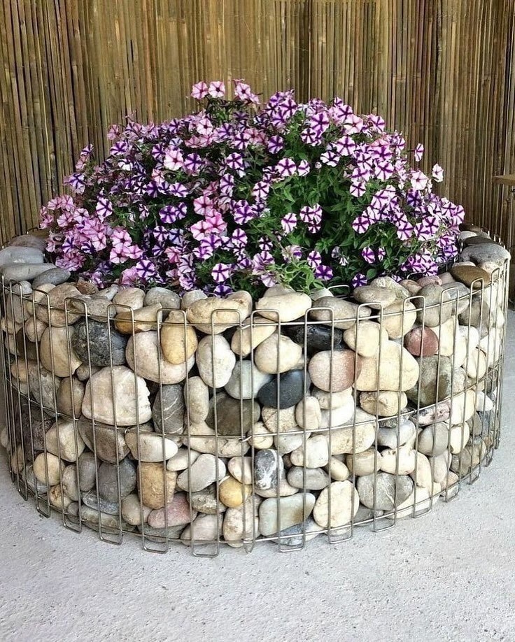 Камень и сетка — казалось бы, что может быть проще? Но посмотрите, какие интересные идеи можно воплотить с их помощью: от изящных клумб до