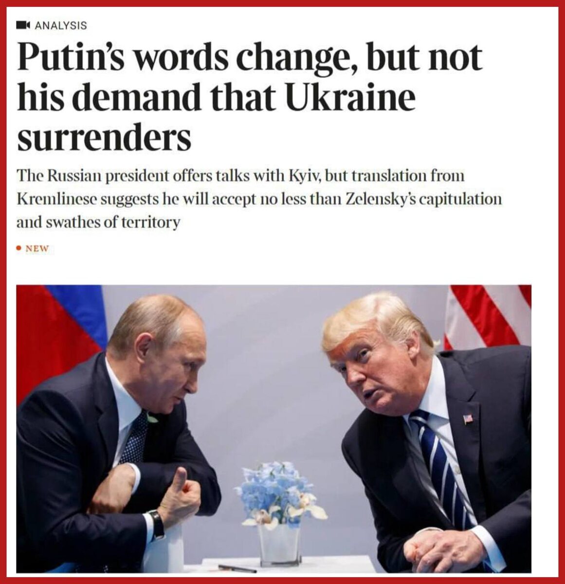 ‼Путин на переговорах потребует капитуляции наркоманского режима, — The Times