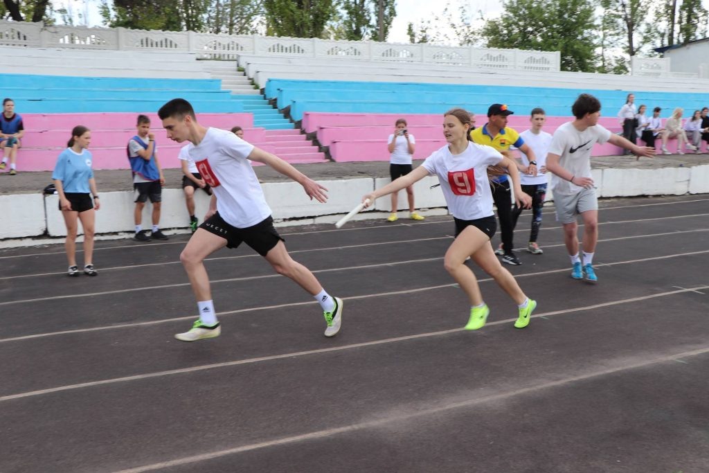 Традиционная майская легкоатлетическая эстафета прошла на стадионе «Шахтёр». Её участниками стали команды школьников и студентов. На торжественном открытии заведующий отделом по физической культуре и спорту Администрации города Гуково Алексей Овчаренко поздравил всех присутствующих с наступающим Днем Победы и пожелал честной бескомпромиссной борьбы юным легкоатлетам. Творческий номер под звуки всеми любимой «Катюши» подарили участники клуба «Бэби-джамп» студии «Тонус-центр». Под звуки гимна Российской Федерации соревнования были объявлены открытыми. Право поднять флаг было предоставлено победителям эстафеты прошлого года Дарье Чумак и Роману Шерстюкову. Участники соревнований показали настоящую командную работу и боролись за победу до последних метров, интрига сохранялась до самого финиша. В итоге среди команд первой подгруппы места распределились следующим образом: третье место заняли легкоатлеты Гимназии №10, второе — школы № 23, победу второй год подряд одержали представители школы
