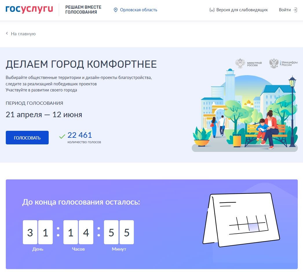 Около 22,5 тысяч орловчан уже выбрали общественные территории для благоустройства
