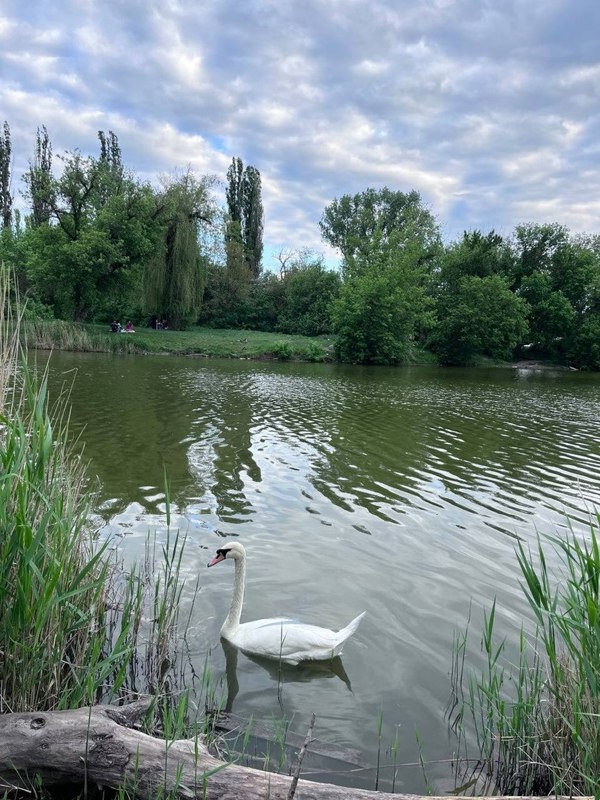 Донецкая группа новостей|Донецк.ДНР (VK) Лебедь на пруду "Молочный" в Пролетарском районе Донецка