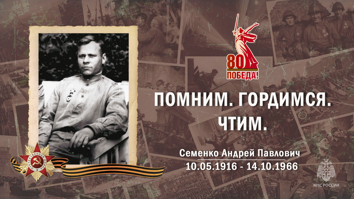 В преддверии 80-летия Великой Победы мы вспоминаем тех, кто подарил нам мир и свободу. Одним из таких героев был прадед старшего специалиста оперативно-аналитического отдела центра управления в кризисных ситуациях Главного управления МЧС России по Амурской области Дмитрия Ведерникова, Андрей Павлович Семенко, чья жизнь стала символом мужества, отваги и беззаветной любви к Родине.