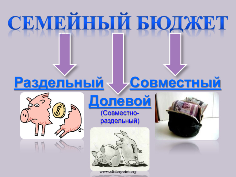 Совместный -все деньги, заработанные супругами, общие. (ВООБЩЕ не наш случай)