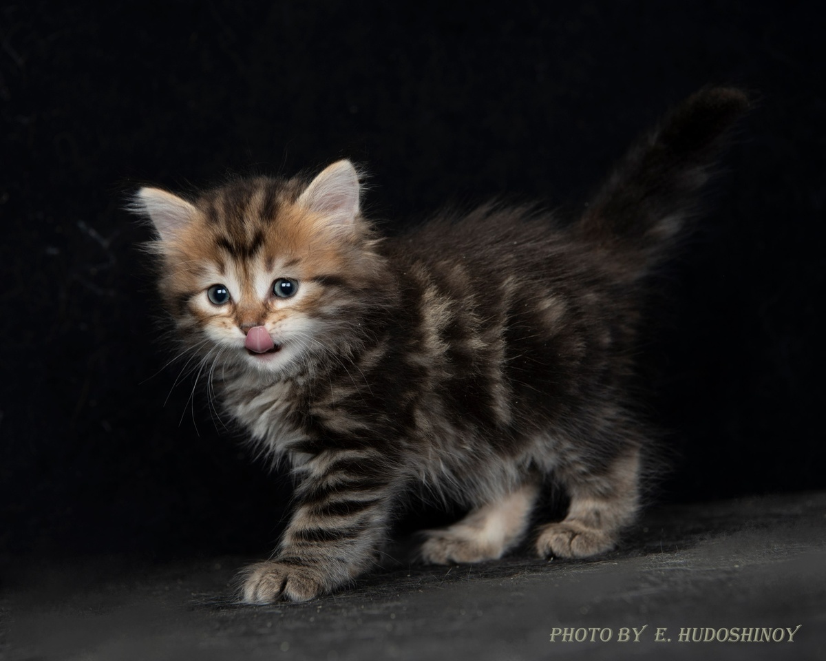 Ясмина, дата рождения 06.04.2025, окрас черный мраморный табби, свободна. Окрас скорее всего "порыжеет" в будущем - будет как мама Роскоша или деда Люкс