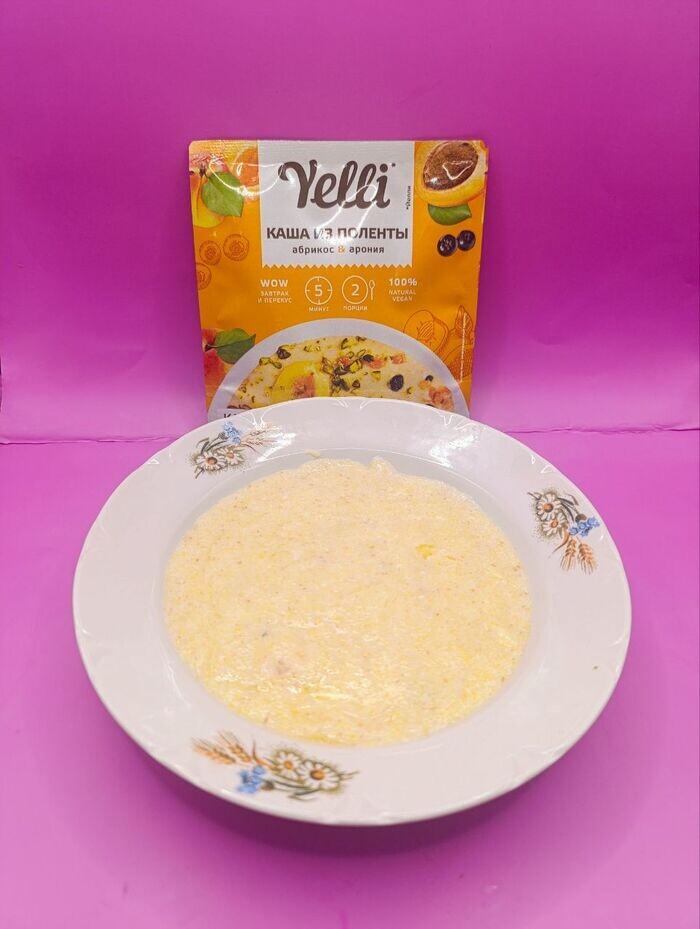 Каша из поленты 3 шт за 205 рублей. Полента — это традиционное итальянское блюдо, приготовленное из кукурузной муки или измельчённой кукурузной крупы. В принципе, блюдо выглядит и на вкус почти как манка, во всяком случае, готовится точно так же, 400-450 мл молока нагреть до кипения, затем туда высыпать кашу, одного пакета хватает на две порции, соль, сахар, масло сливочное, всё по вкусу. Правда полента нежнее чем манка, ещё ягоды и фрукты делают ее оригинальнее. Я с удовольствием поела, при случае повторила бы такую трапезу. Шоколадно-йогуртовый десерт 20 грамм за 165 рублей. Этот необычный десерт сделан при помощи лифолизация, лифолизация - метод мягкой сушки, который сохраняет до 90% всех витаминов. По консистенции похоже на меренгу, легко тает во рту и раскрывается яркими ароматами, черники, йогурта и белого шоколада, не приторно и очень вкусно, но мало. Я сначала подумала что эту сладость наши производят, но если внимательно изучить этикетку, то видно что делается продукт в Китае,