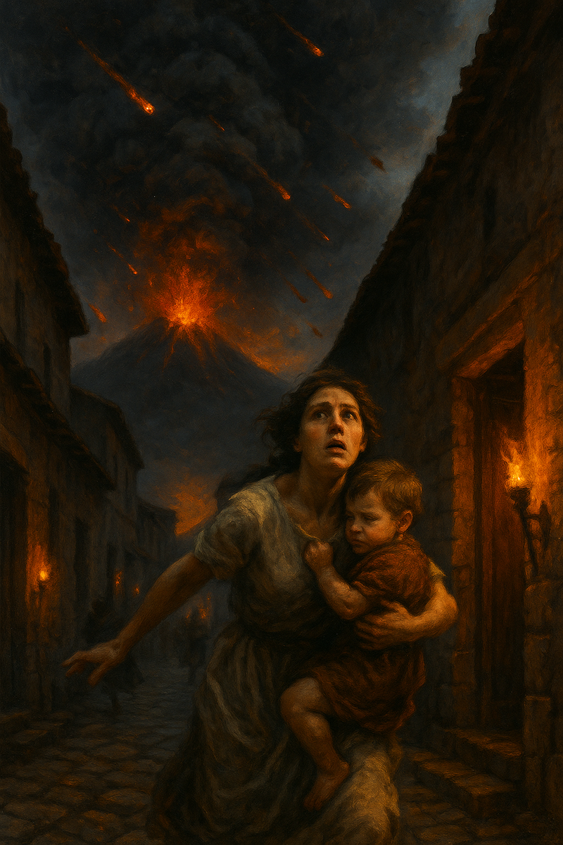 Спустя 1700 лет археологи найдут фигуры людей в позах смерти: мужчина, прикрывающий ребёнка; женщина, прижавшаяся к стене. Помпеи — это не просто руины. Это город, который умер в реальном времени и был законсервирован как фотография последней секунды.