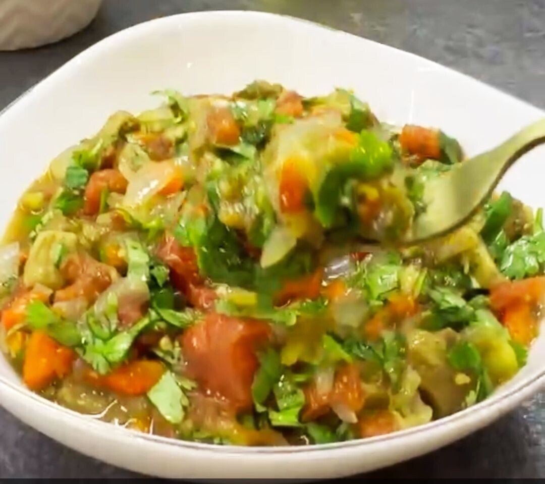 Приветствую вас! Делюсь рецептом вкусного блюда, которое отлично дополнит шашлык. Овощи можно запечь на мангале или в духовке. Ингредиенты: - Помидоры – 2-3 шт. - Баклажаны – 1-2 шт. - Болгарский перец (красный и зеленый) – по 1 шт. - Лук – 1-2 шт. (в зависимости от размера). - Чеснок – 1 шт. и 2-3 зубчика для измельчения. - Кинза и петрушка – по 15 г. - Соль, черный молотый перец, сухая аджика, хмели-сунели – по вкусу. - Подсолнечное масло. Приготовление: 1. Овощи вымойте и обсушите. 2. Выложите их целиком на противень, полейте растительным маслом и запекайте в разогретой до 180 градусов духовке 30 минут. 3. Готовые овощи накройте пергаментной бумагой на 10-15 минут. 4. Очистите овощи и нарежьте кубиками. 5. Добавьте измельченную зелень, чеснок через пресс, соль, черный перец, хмели-сунели, аджику и растительное масло. 6. Тщательно перемешайте и подавайте к столу. Приятного аппетита!