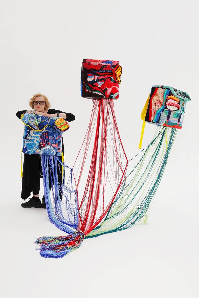 🩷Однажды художница Катика поняла, что очень любит и уважает тех, кто приносит ей еду, которую она заказывает И захотела сделать что-то милое и уютное для них. И как художник-творец, умеющий вязать, связала обнимательные термо-сумки Три термосумки красного, зелёного и синего цветов с изображениями рук, выполненными в пиксельной стилизации. Эти цвета соответствуют RGB-модели (Red, Green, Blue), лежащей в основе экранного изображения, и подчеркивают технологическую природу среды, в которой происходит взаимодействие. Пикселизированные изображения рук символизируют жест передачи — простое, но значимое движение, в котором заключены внимание, тепло и связь между курьером и получателем На один день она даже решила стать частью коммьнити своих героев. С сумкой «Теплоты» за спиной Катика на день стала курьером. Этот жест стал частью проекта: попыткой вживую почувствовать, что значит нести заботу через город Для Катики курьеры — настоящие герои мегаполиса. Люди, которые в любую погоду, несмо