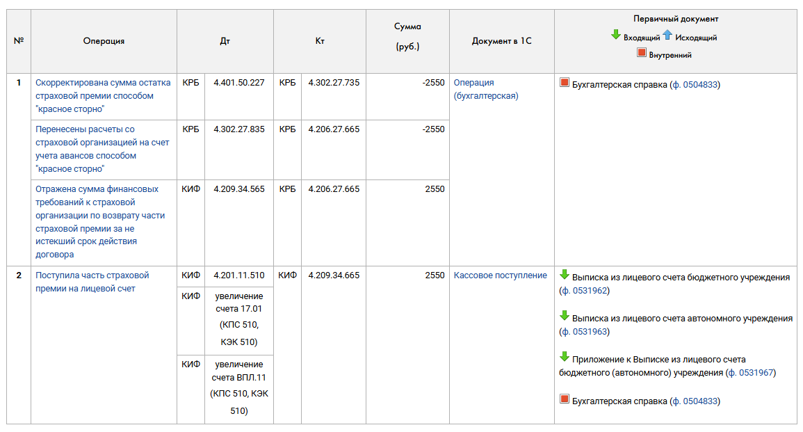 - для корректировки суммы остатка страховой премии способом "красное сторно"