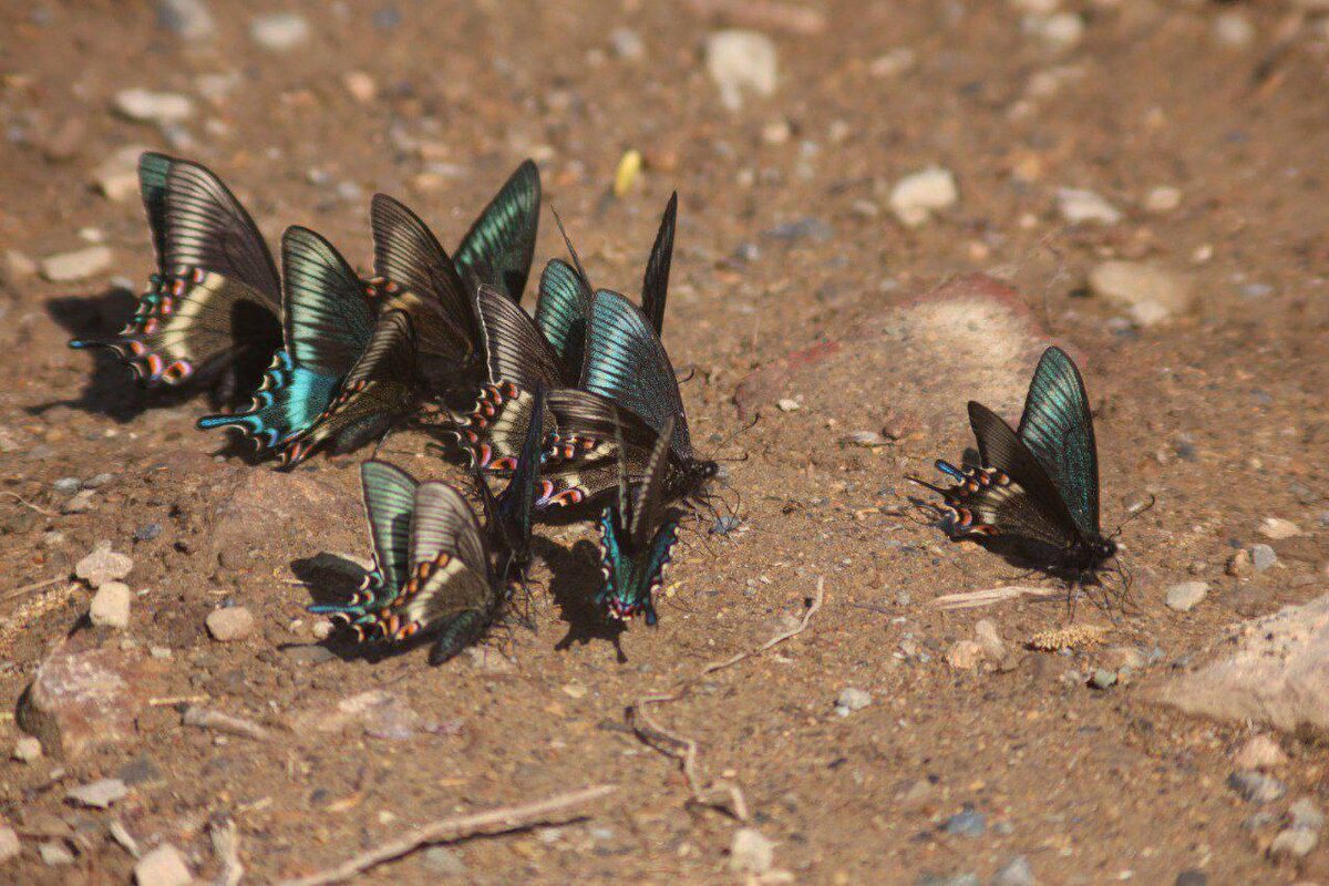 «Земля леопарда» — большой аэродром для маленьких летательных объектов, и речь идёт о бабочках 🦋 Сейчас у парусников Маака начался пик лëта! Можно увидеть крупные скопления, насчитывающие десятки самых больших бабочек России. Такие мини-хороводы образуют самцы на влажных участках дорог, по берегам рек и ручьёв. Самки же в начале лёта держатся в кронах деревьев. Фото: Илья Плотников, сотрудник отдела науки «Земли леопарда». 🐾 Здесь «Земля леопарда» 🐾