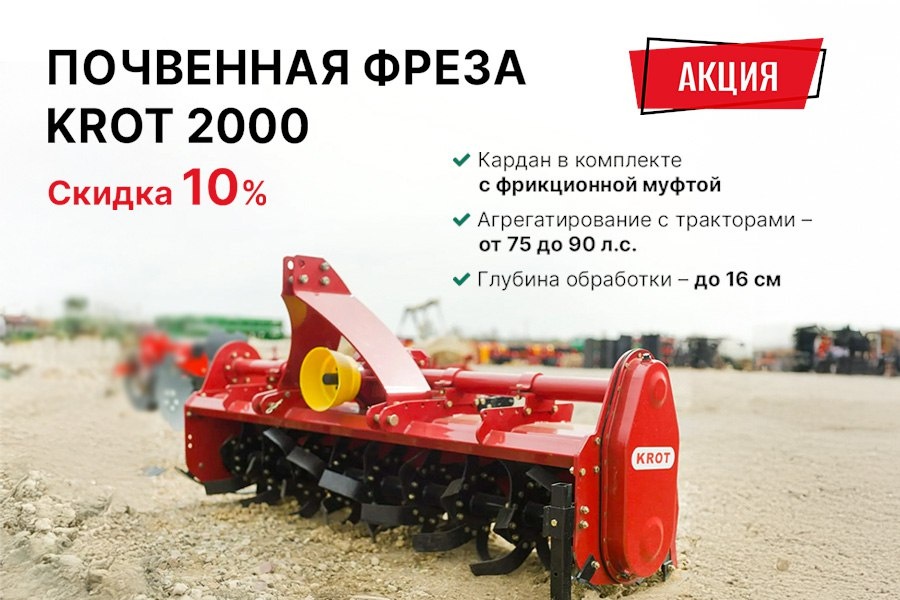 Качественная предпосевная обработка почвы с фрезой KROT-2000 KROT лучше других справится с подготовкой грунта под посев овощных культур – агрегат создает мелкокомковатую структуру почвы, перемешивая ее с растительными остатками, а также улучшает аэрацию. Ключевые преимущества: ⚡️ рабочая ширина 2 м позволяет обрабатывать до 1 га/ч; ⚡️ агрегатируется с тракторами мощностью от 75 до 90 л.с., например, МТЗ-82; ⚡️ благодаря ножам с качественной заточкой из борсодержащей стали снижается нагрузка на приводные детали фрезы и трактора, это позволяет работать на тяжелых и каменистых почвах; ⚡️ простота в обслуживании и высокая ремонтопригодность. Характеристики: • глубина обработки – до 16 см; • количество рабочих органов – 54 ножей; • число оборотов ВОМ – 540 об/мин; • масса – 374 кг. ‼️ Кстати ‼️ 🔴 Сейчас на фрезы KROT-2000 действует скидка 10%, кардан в комплекте с фрикционной муфтой 🎁