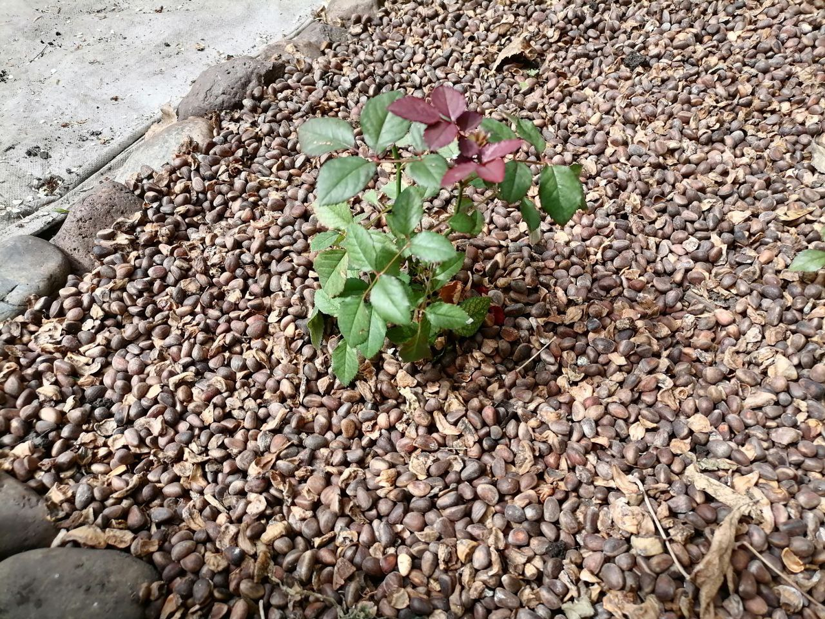 На скорую руку высыпала орешки на клумбу с недавно высаженными саженцами роз, чтобы вам показать.