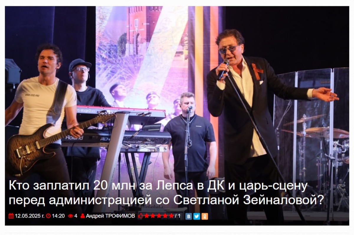 Кто заплатил 20 млн за Лепса в ДК и царь-сцену перед администрацией со Светланой Зейналовой