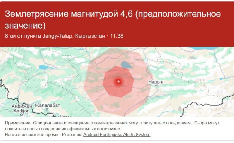 Очаг землетрясения располагался на территории Кыргызстана в 239 км на юго-западе от Алматы.
