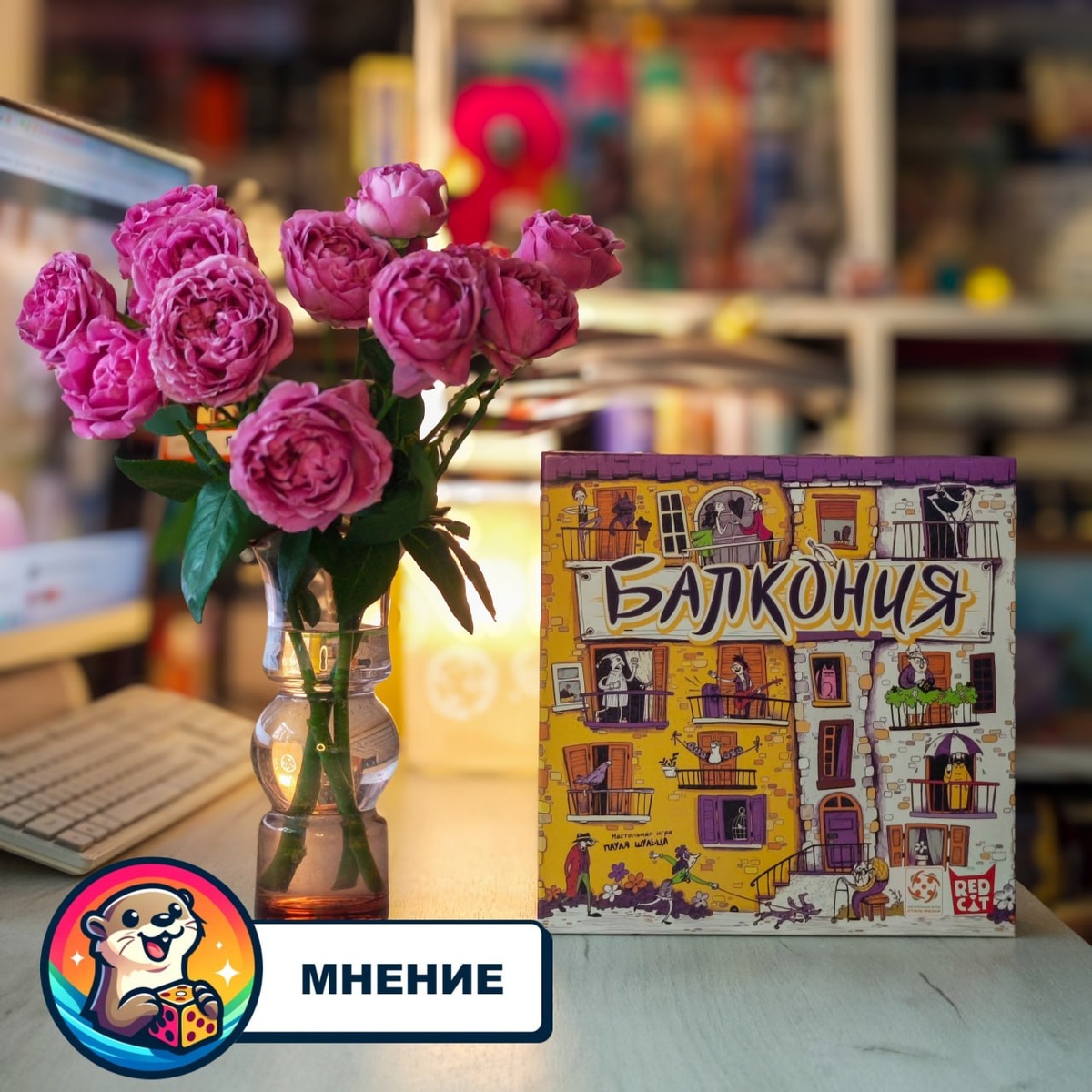 Приглашаем в гости к bershi.boardgames! Почитать о трудностях проживания с соседями в многоквартирном доме. Обзор прекрасной настольной игры "Балкония"! Приятного чтения! 💭 " — 🎲🎉 Балкония 🧩 Дуэль, которая оказалась вовсе не детской. 🔹Я брала эту игру в качестве детской, но детского в ней только оформление. По сути, это приятный азартный филлер-дуэль с механикой "I split you choose" и с непростым подсчетом очков. По смыслу и очкам я бы сравнила игру с любимыми "Драфтозаврами". 🧩 Суть игры: 🔹Нужно располагать балконы так, чтобы получить максимальное количество очков. Очки начисляются за различные элементы на балконах: ноты, влюбленных, котов, предметы одежды, цветы, наличие или отсутствие людей, птиц и козырьков. 🧩 В чём интерес? 🔹Сложность в том, что соперник выбирает, какие 2 из 4 сторон ты увидишь, и ты можешь поставить балкон только одной из них. Потом вы меняетесь ролями. Получается, что ты можешь выбрать 2 стороны, которые тебе подойдут. Конечно, не факт, что ты полу