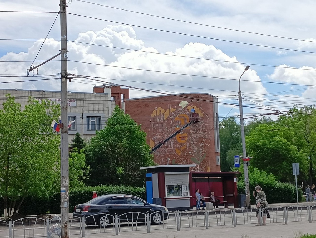 Город трудовой доблести: художники рисуют новый мурал в центре Рубцовска