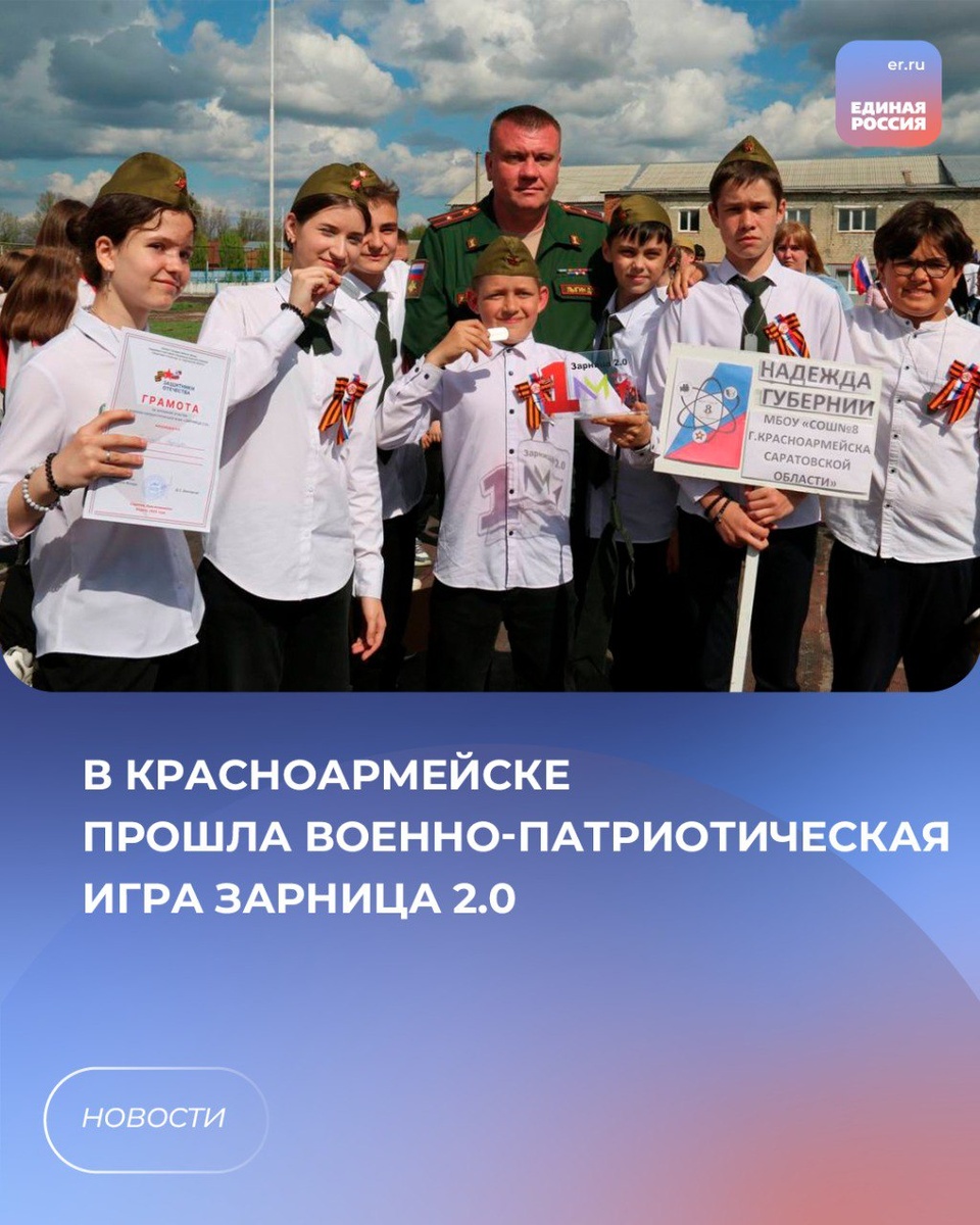 👍🏻Военно-патриотическая игра состоялась при организационно поддержке партии «Единая Россия». В городе Красноармейск прошла Зарница 2.0. Участие в которой приняли 200 ребят из 10 команд, в трёх возрастных группах. По итогу соревнований, победителями стали три команды, которым член президиума регионального политсовета «Единая Россия» Дмитрий Лыгин вручил комплекты военной формы, а также памятные подарки. 💬«Рад, что смог побывать на этой замечательной Зарнице. Эта увлекательная спортивная игра направлена на развитие патриотизма, физической подготовки, командного духа и интереса молодежи к военной службе. Главная цель — воспитание любви к Родине, укрепление здоровья и подготовка молодых людей к защите Отечества. «Зарница 2.0» является важным инструментом воспитания молодого поколения, способствующим формированию здорового образа жизни, патриотизма и готовности защищать свою страну», - поделился своими впечатлениями Дмитрий Лыгин, и поблагодарил организатора игры, руководителя мест