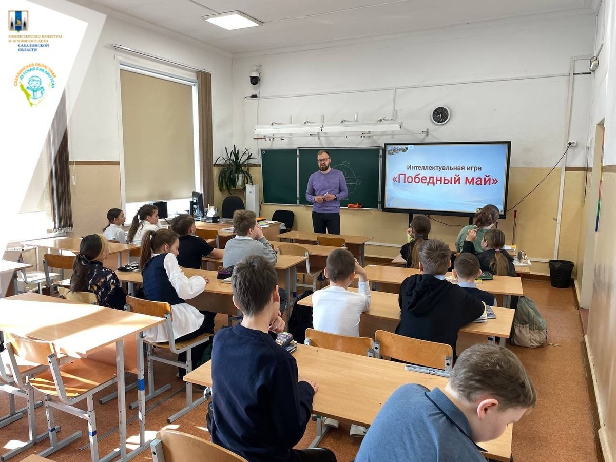 ИНТЕЛЛЕКТУАЛЬНАЯ ИГРА «ПОБЕДНЫЙ МАЙ»🚩⭐️ В преддверии празднования 80-летия Победы советского народа в Великой Отечественной войне сотрудник Сахалинской областной детской библиотеки провел для школьников СОШ № 31 увлекательную интеллектуальную игру – «Победный май». ⭐️ Участников мероприятия объединил общий интерес к истории своей страны. Игра состояла из нескольких этапов, каждый из которых позволял школьникам проверить свои знания о событиях Великой Отечественной войны, подвигах героев-фронтовиков и значении Победы для нашего народа. 🚩 Вопросы были разнообразными: от исторических фактов и дат до знаменитых песен и стихотворений военных лет. Особое внимание уделялось героическим страницам военной истории России, рассказанным живым языком и эмоционально насыщенно. Благодаря такому подходу участники глубже прониклись величием подвига наших предков, укрепив свою связь с историей Родины.🌼🪖⭐️🚩
