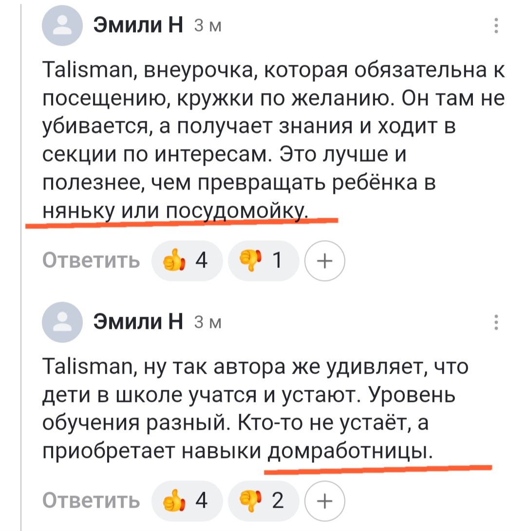 Приползла мать с работы, приготовила ужин, убрала посуду, и вроде бы можно уже рухнуть без сил и отдохнуть - но взгляд женщины падает на кроссовки сыночка, размером поболее, чем её собственные. Погода - сами видите, сыро на улице, вот это мессиво чадо на подошвах в дом и принесло. Весь коврик угваздало, и до середины прихожки прошло, где наконец скинуло свои подкрадули с налипшими комьями грязи. - Мать я или где, - грустно вздыхает женщина и берётся за тряпку. Ребёночка она не беспокоит - ни-ни! Пусть не отвлекаться детинушка, играет себе в роблокс и бравл-старс спокойно, он же устал бедненький, не то что его мать. Когда я читаю вот такие вещи, я просто недоумеваю - как можно на полном серьёзе вот так рассуждать? Сходил в школу и устал. Пусть отдыхает. Помыть за собой тарелку или положить её в посудомойку - это для таких мамаш превратиться чаду в домработницу. Что за учеба такая весь день? У ребёнка попа ещё не квадратная от бесконечного сидения за столом? Может ему и не помешало бы д