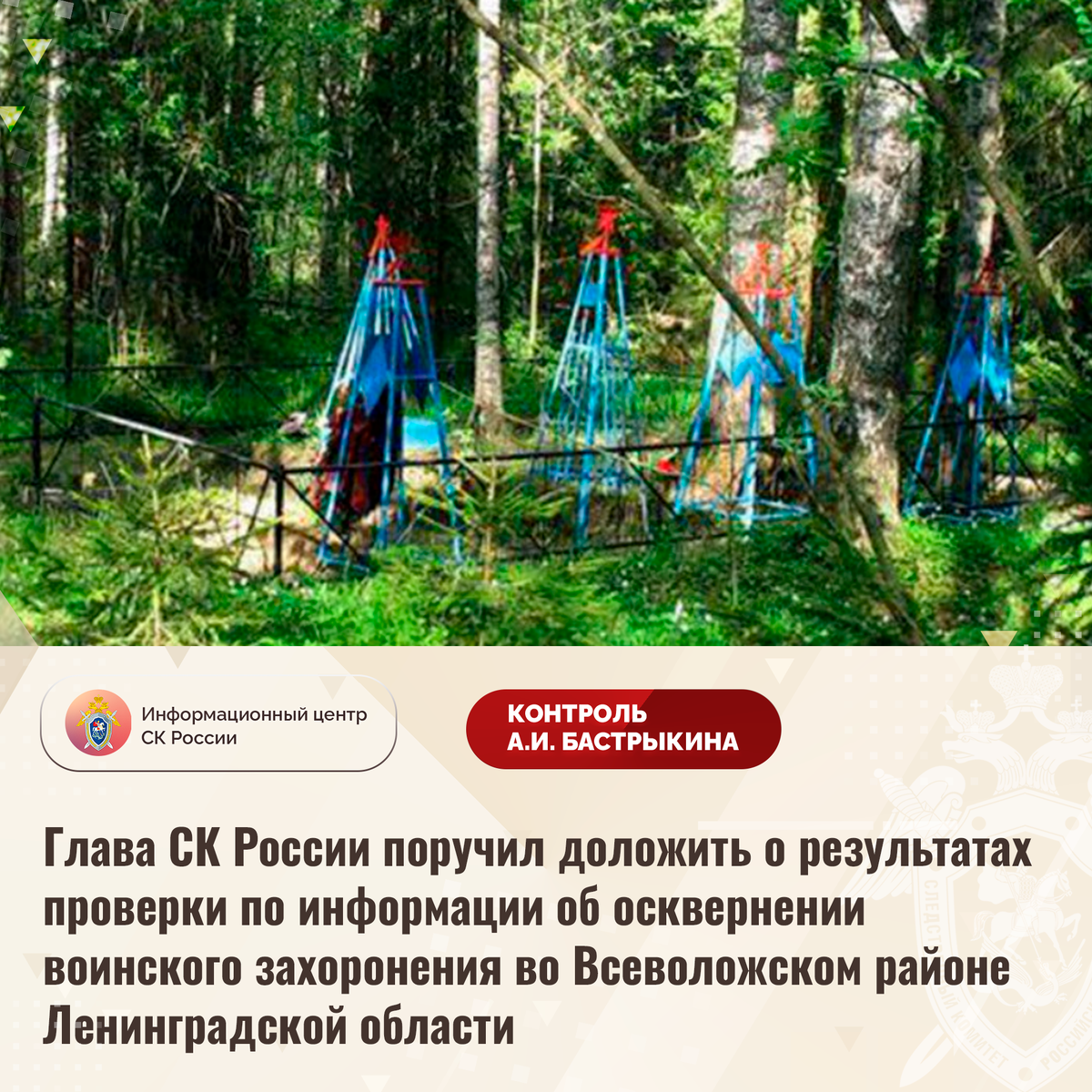Глава СК России поручил доложить о результатах проверки по информации об осквернении воинского захоронения во Всеволожском районе