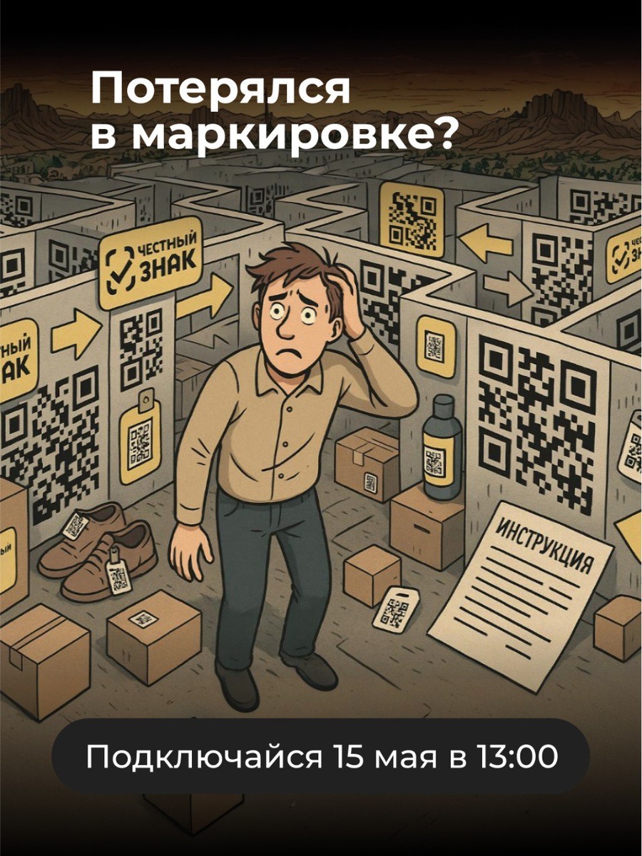 Заблудился в теме маркировки?🥺 - Товары, сроки, штрафы — как не потерять бизнес и разобраться в тонкостях? - Мы знаем! Уже несколько месяцев с командой проводим Q&A-сессии, где в прямом эфире наши эксперты разбираются с реальными ситуациями и дают детальные ответы (даже если вы отгружаете большие партии товаров, а с «Честным знаком» до нововведений были знакомы заочно) Сэкономим ваши деньги, время и силы! ⏰ Когда? 15 мая, 13:00 📲 Регистрация Ждем вас на мега полезном эфире