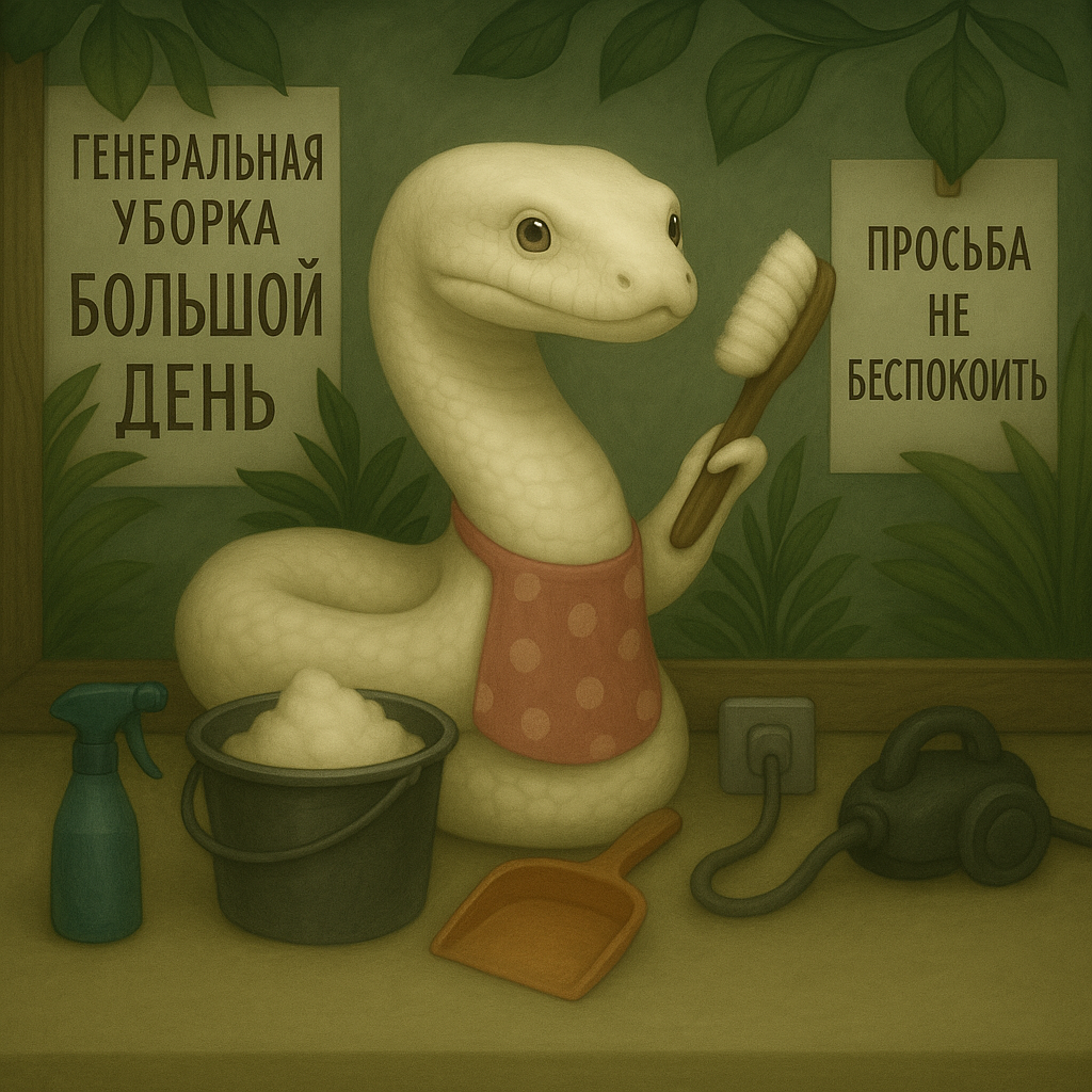Вы когда-нибудь заходили к террариуму и замечали неприятный запах или мутные блики на стенках? Я однажды не заметила пару «сюрпризов» в углу, и через неделю Белый начал проводить в укрытии почти всё время. Чистота — не просто красота, а ключ к здоровью вашего питона. Представьте себе: вы заметили, что ваш королевский питон оставил «сюрприз» в углу террариума. Не откладывайте на потом! Точечная очистка — это ваш первый шаг к поддержанию чистоты. Удалите фекалии и остатки пищи сразу же. Это не только предотвратит размножение бактерий, но и создаст приятную атмосферу для вашего питомца. Используйте одноразовые перчатки и бумажные полотенца для удаления отходов. Протрите место дезинфицирующим средством на основе хлоргексидина или уксуса. Каждый день или по мере необходимости. Не забывайте про протирание стенок террариума. Это как утренний ритуал для вашего королевского питона — освежите его пространство! Используйте мягкую губку и безопасное для змей средство. Замените загрязненный субстра