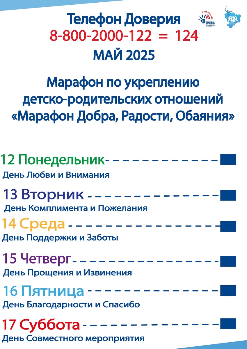 Алгоритм участия детей и родителей в акции «Марафон Добра, Радости, Обаяния» Целью Марафона ДРО является укрепление взаимоотношений детей и родителей, освоение и расширение способов проявления внимания и заботы, проявление привязанности и благодарности, оказание помощи и поддержки, умение говорить комплименты и просить прощения, укрепление сплочения членов семьи. Марафон ДРО проходит 6 дней: 5 дней (будни) – 5 тематических заданий + 1 день (выходной - совместное досуговое мероприятие). https://xn----7sbh4abisab1b4j.xn--p1ai/misc/25669-algoritm-uchastiya-detey-i-roditeley-v-akcii-marafon-dobra-radosti-obayaniya.html Возрастная категория 6+