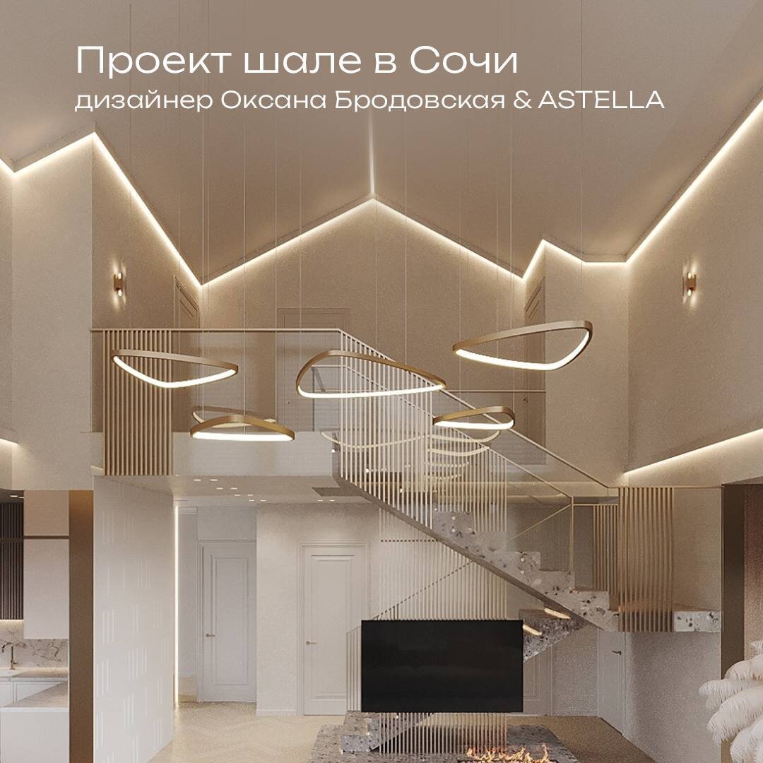 ASTELLA — твой источник света! Компания ASTELLA — это не просто поставщик осветительных приборов, это надежный партнёр в создании неповторимой атмосферы в любом помещении. Проект шале в Сочи дизайнера Оксаны Бродовской, вдохновлённый красотой альпийских лугов и горных пейзажей, является наглядной демонстрацией возможностей ASTELLA🏔️🌅. Сотрудничество сопровождалось подробным обсуждением всех аспектов проекта — от технических характеристик оборудования до самых тонких деталей визуального восприятия. В результате ASTELLA помогла в разработке концепции освещения, расчете освещенности, подборе и полной поставке светового оборудования. Стремление к долгосрочному и взаимовыгодному сотрудничеству — одно из главных преимуществ ASTELLА. Компания вкладывает значительные ресурсы в поддержку своих заказчиков. Это подтверждает новая инициатива ASTELLA — запуск персональной бонусной программы для клиентов в рамках конкурсного проекта интерьерного центра ARCHITECTOR. Теперь дизайнеры, работающие