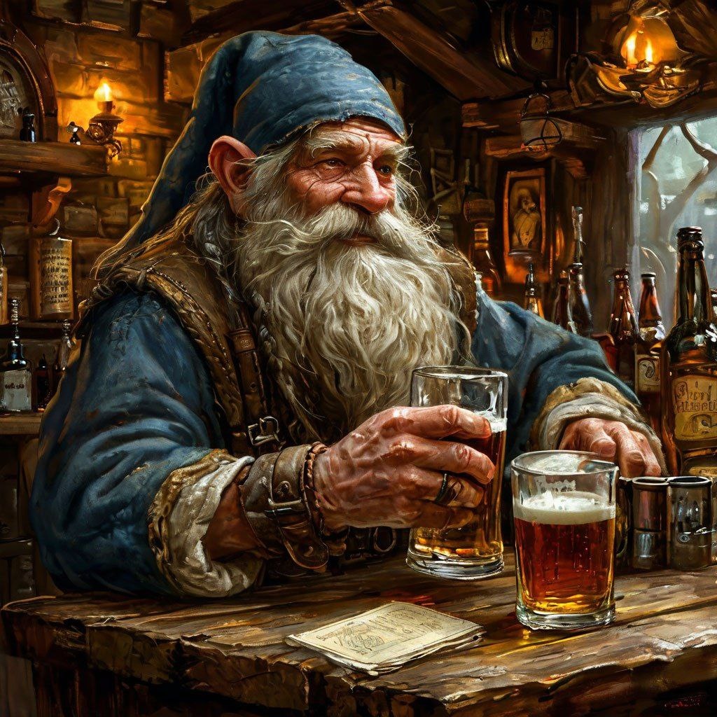 «В Эреборе ввели новые правила продажи эля: теперь только по бороде!» Вчерашнее решение Совета Старейшин Гномов о введении «бородового ценза» для покупки алкоголя уже успело перевернуть жизнь города с ног на голову. Отныне каждый, желающий приобрести хоть кружку эля, обязан предъявить солидную растительность на лице — иначе хоть плачь, хоть прыгай, но хмельного не видать. Великий казначей Глоин Старобородый, краснея от возмущения, пояснил нововведение: «Надоело, что всякая безбородая шушера опустошает наши погреба! Эльфы свои тонкие морды тычут, люди с жалкими щетинками лезут, а эти... эти хоббиты! Совсем лысые, как младенцы! Настоящий гном должен иметь бороду — так решили, так и будет!» Первые же дни действия закона превратились в настоящее безумие. В тавернах творится невообразимое: эльфы в отчаянии приклеивают к подбородкам что попало — от паучьего шелка до конских хвостов, но бдительные целовальники быстро раскусили хитрость. Особенно досталось одному знатному эльфийскому купцу,