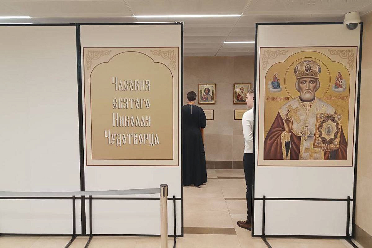 аэропорт Красноярска имени Дмитрия Хворостовского пополнился духовным объектом — в зоне общего доступа терминала начала работу часовня в честь святителя Николая