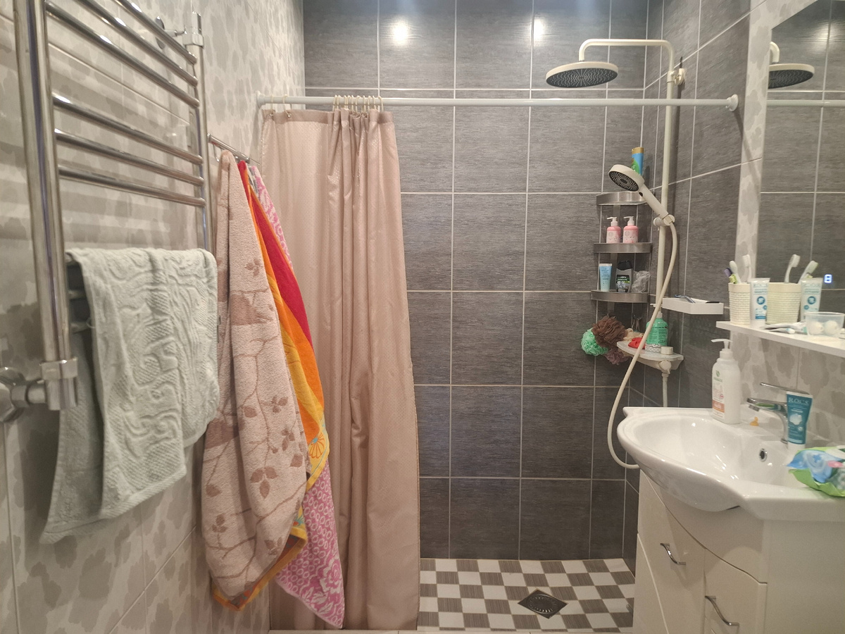 Привет! Наша ванная комната уже давно требовала преображения. Ремонт в ней не старый и абсолютно меня устраивает. А вот аксессуаров, придающих помещению шарм, явно не хватало. На крючках висели разномастные полотенца, полочка над раковиной и сама раковина заставлены различными банками и тюбиками. Все это создавало дикий визуальный шум. Плюс невнятная шторка для душа, вот просто никакая. Плюс треснувшее мусорное ведро. В общем, вы поняли. "До" было вот так: И тут меня накрыло желание изменений в доме. Весна, наверно, так подействовала. - Сначала заменила шторку для душа. Заказала на вб красивущую шторку с цветочным рисунком. Артикул: 232796088 Оттенков в ней несколько: кораллово-розовый, беж, серый, эвкалиптовый зеленый. Благодаря этому выбор других аксессуаров для ванной не сужался до одного-двух цветов. По размеру подошла идеально. Шторка имеет водоотталкивающую пропитку и не намокает, капли воды не пропитывают ее, а остаются на поверхности. - Убрала нагроможденность в районе р