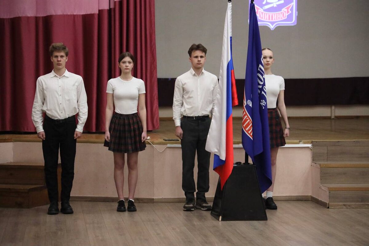 🇷🇺 Поднятие флага. 12 мая Майские закончились, а впереди — последние недели учебного года. В ожидании тепла и каникул провели традиционную церемонию поднятия флага. 1️⃣ Знамённая группа первого корпуса — Екатерина и Ангелина из 10 «Б», а также Андрей и Матвей из 10 «В». 2️⃣ Ученики 5 «З» Амина, Максим, Елизавета и Матвей поднимали флаг во втором корпусе. ——— Не замерзайте, котаны! ☀️ #ДОНМ #РоссияМояРодина