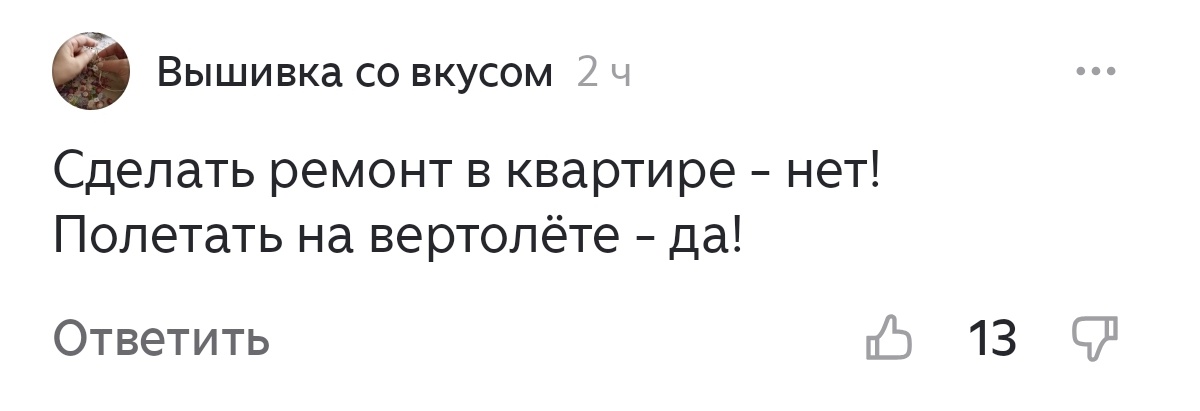 Когда я написала о том, как мы с подругой потратили в Дубае 47 000 рублей на эмоции, естественно, нашёлся тот, кто написал такой комментарий👇 Предсказуемо, конечно же. Многих моих читателей триггерит ремонт в моей квартире, хотя он обычный, хоть и не новый, но ему, как и квартире, 15 лет. И если вас также цепляет чужой ремонт, дело в вас, а не в ремонте. Если вы с таким запросом пойдёте к специалисту, он раскроет истинные причины такого поведения. Но давайте порассуждаем вот на какую тему: надо копить деньги или вкладывать в ремонт, или всё же вкладывать в себя? В истории моих родственников есть две поучительные истории. По папиной линии родители жили зажиточно по меркам СССР. На счетах моей бабушки хранились суммы порядка 10 000 рублей того эквивалента. Для понимания, это были большие деньги, по сегодняшним меркам — 2,5–3🍋 Она их не тратила, и они просто превратились в фантики. Их можно было поменять на новые деньги, но по абсолютно невыгодному курсу. Выходит, копила зря, а могла бы