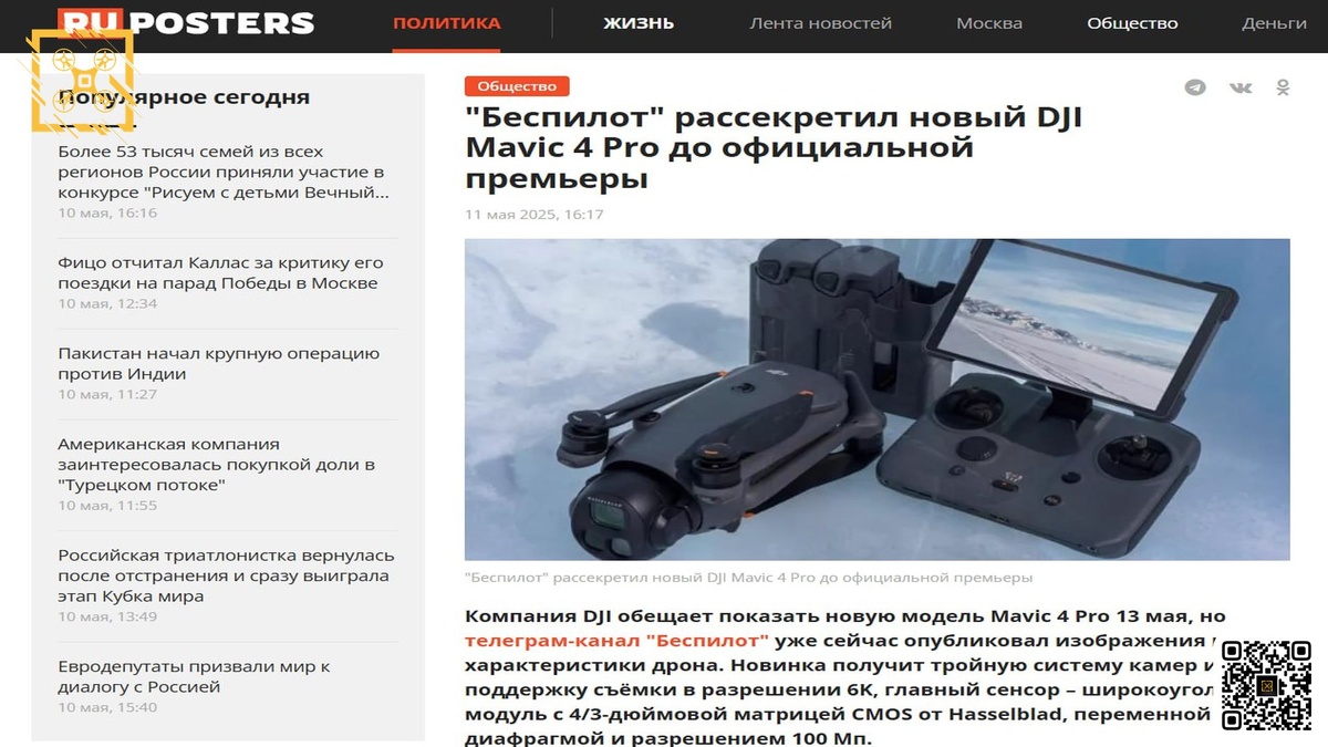 👉Так-так-так, что тут у нас? 😏 Канал «Беспилот» отличился: «слил» информацию о Mavic 4 Pro за два дня до официальной премьеры! Весь мир