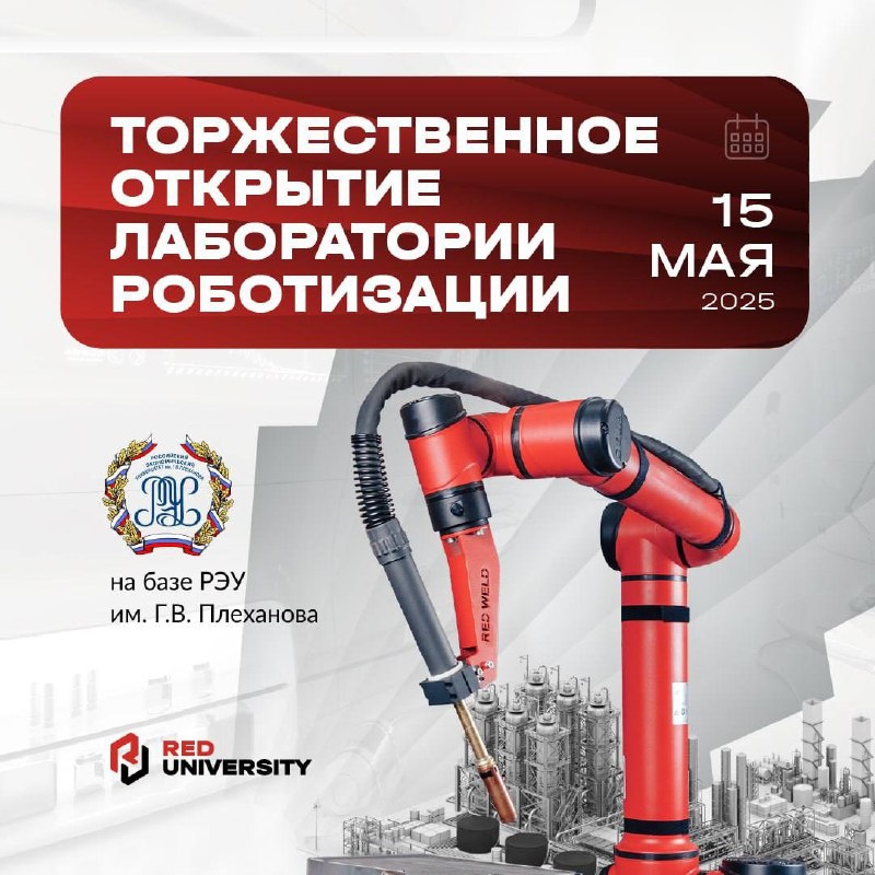 Торжественное открытие лаборатории роботизации 🚀 Рады сообщить, что 15 мая в РЭУ им. Г. В. Плеханова состоится официальное открытие современной лаборатории роботизации TECHNORED, приуроченное к проведению VII Международного научного форума «ШАГ В БУДУЩЕЕ: Глобальный форсайт, искусственный интеллект и стратегическое лидерство»! Открытие лаборатории – это важный шаг в подготовке нового поколения специалистов, вооружённых не только фундаментальными знаниями, но и практическими компетенциями в области передовых промышленных технологий. Здесь, на стыке науки, образования и индустрии, студенты и преподаватели получают доступ к самому современному оборудованию и возможность отрабатывать все полученные знания на практике В таких условиях каждый учебный день превращается в шаг к будущей карьере, где теория непосредственно соединяется с действием, а навыки отвечают требованиям цифровой эпохи 🔥 📌 В рамках мероприятия будет представлен потенциал лаборатории, её оборудование, ключевые напр