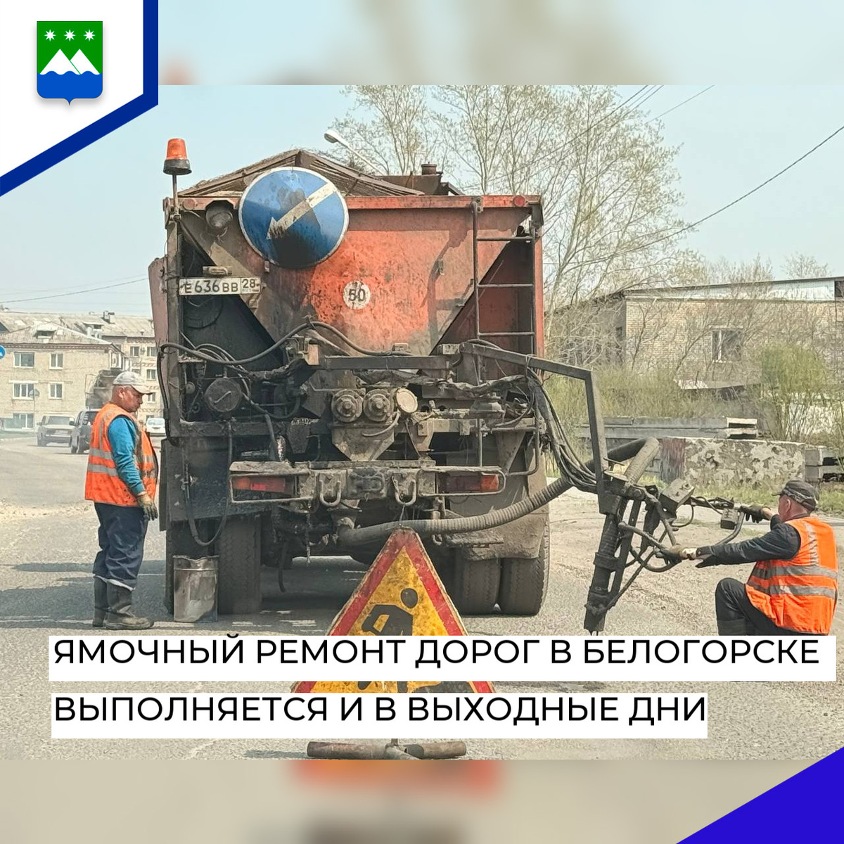 Ямочный ремонт дорог в Белогорске выполняется и в выходные дни