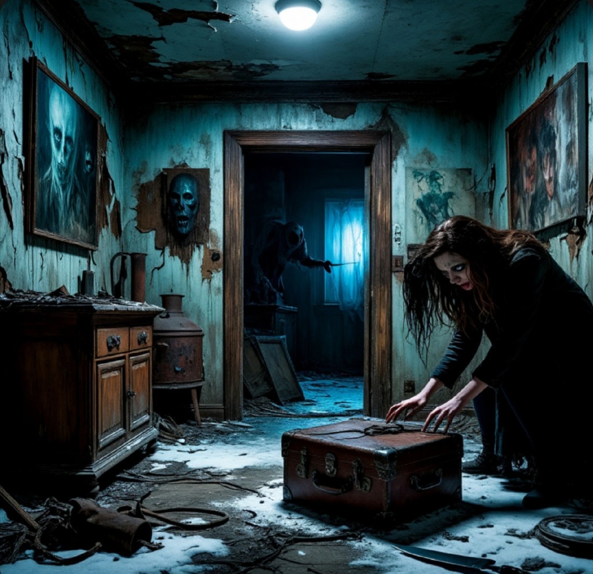 Ветер выл за окном, как раненый зверь, хлестая по стеклам грязным снегом. Ева, закутавшись в старый плед, поежилась. За окном простиралась бескрайняя, заснеженная пустошь. Их машина сломалась в десяти милях от ближайшего города, и единственным укрытием оказался покосившийся домик, одиноко стоящий посреди ничего. Внутри было жутко. Запах плесени и гнили пропитывал каждый сантиметр пространства. Мебель покрыта толстым слоем пыли, словно дом замер в ожидании чего-то ужасного. Но выбора не было. На улице смерть от переохлаждения, а здесь… здесь хотя бы крыша над головой. “Похоже, здесь давно никто не жил”, - пробормотал Марк, пытаясь развести огонь в ржавой печке. Ева обошла комнату. На стенах висели странные картины. Не пейзажи, не портреты. Абстрактные мазки, выполненные темными, зловещими красками. Что-то в них было неправильным, вызывающим тошноту. В углу комнаты Ева заметила небольшую дверь. За ней, как она предположила, должна была находиться кладовка. Дверь была приоткрыта, и