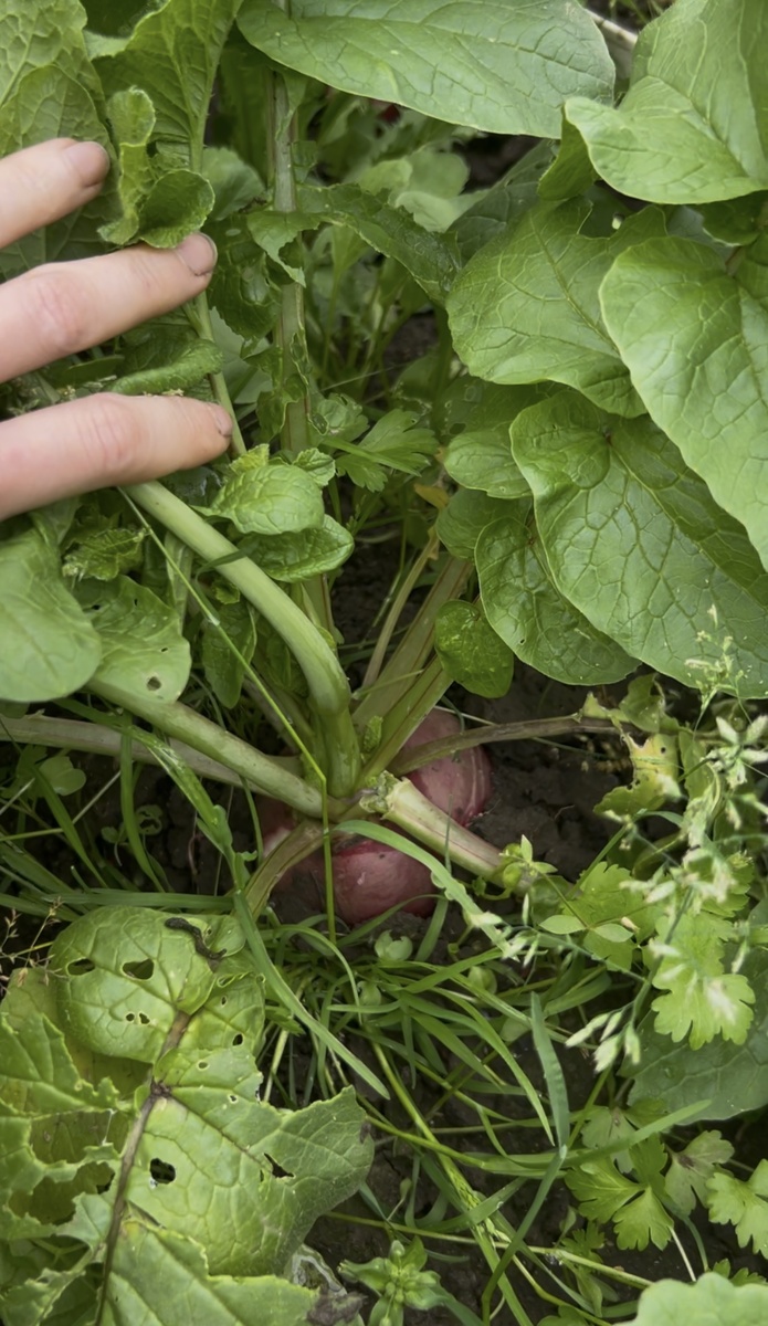В Краснодаре январь в этом году выдался очень теплым, термометр показывал до +25 , очень хотелось в такую солнечную погоду что-то поделать на огороде и я решила, с надеждой получить ранний урожай, посадить семена трав и корнеплодов. В середине апреля поспел редис, еще тогда я заметила что он уж очень крупный, в отличии от моего обычного редиса. Семена каждый год я сею одни и те же - в крафтовых упаковках без картинок. Разница только в том, что до этого я сняла в марте, а сейчас в январе. В итоге пока прошла пасха, родительский день, майские, не было времени собирать редис и заглянув недавно на грядку я обалдела - там стоят редисы размером в два кулака ! Эксперимент удался, мой опыт действительно подтверждает, что правильная агротехника может превратить даже самые простые семена в урожай-гигант 😁 Можем поподробнее разобрать как так получилось: 🚩Редис – культура короткого светового дня. Посев зимой позволил избежать стрелкования и огрубения корнеплодов. 🚩Выращивала без укрытия