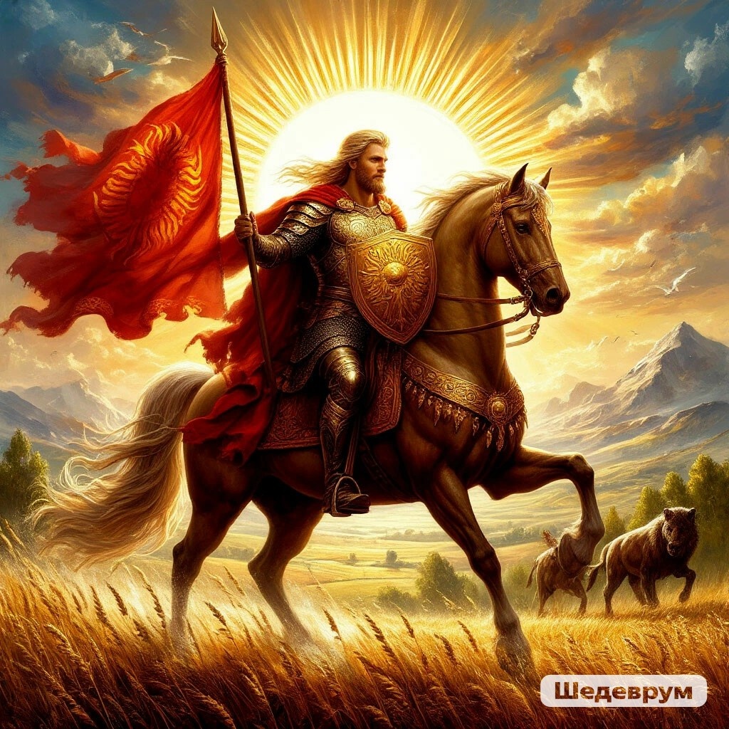 «бог» — буквально божество, но также тот, кто наделяет, сущий в даре. Иными словами, Даждьбог — «Дарующий Бог», «Бог, дающий благо», Светоносец, который приносит людям тепло, изобилие и небесную милость. Это имя мы встречаем в одном из ключевых древнерусских источников — «Слове о полку Игореве», где русские князья названы «внуками Даждьбога». Уже одно это говорит о его важности и глубокой укорененности в славянском миропонимании. 🔥 СОЛНЦЕ — ЕГО ЛИЦО Даждьбог — божество Солнца, но не просто светила, а живое сознание светового начала. В ряде источников (включая «Велесову книгу») он описывается как: В представлениях наших предков Солнце не было безликой сферой. Оно имело душу, силу, волю. И это был Даждьбог — олицетворённое Солнце, дарующее жизнь и охраняющее мир от тьмы. 🌾 ПОВЕЛИТЕЛЬ УРОЖАЯ И ДОСТАТКА Как «дающий бог», Даждьбог был также тесно связан с изобилием,