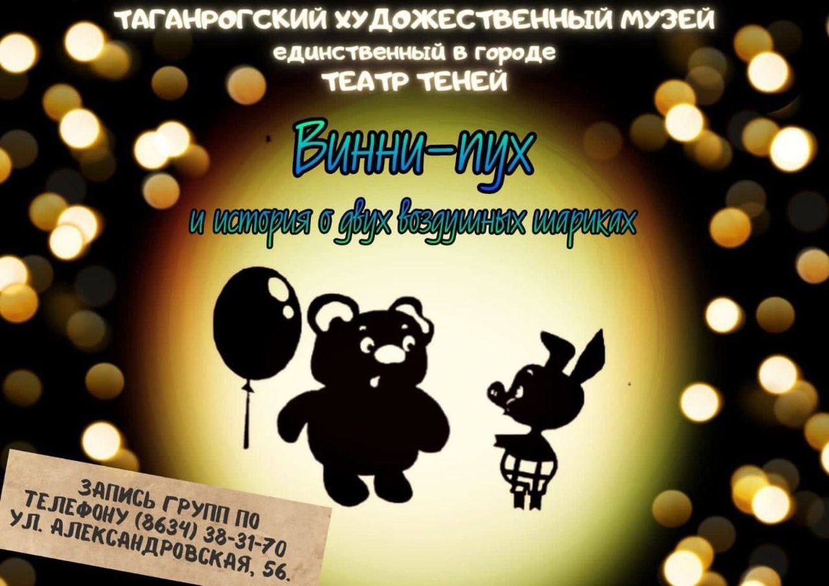 ✨Куда идем мы с Пятачком- Большой-большой секрет! И не расскажем мы о нем О нет, и нет, и … -Да? -Нет!😎 😉 Помните песенку про Винни-Пуха и его верного друга Пятачка? Тогда бегите к нам скорей, чтоб не пропустить ни строчки! 🤩Приглашаем вас в волшебный мир теней на 🎈спектакль «Винни-Пух и история о двух воздушных шариках»! 🎈 🧸Вас ждет встреча с самым очаровательным медведем в мире и, конечно же, море отличного настроения! 🐷Куда идем мы с Пятачком? В Таганрогский художественный музей на встречу с приключениями! 🧐Присоединяйтесь к нам 17 мая в 11:00 по адресу 🏛️ул. Александровская, 56. ☎️Телефон для справок и записи: 38-31-70. 👀Спектакль состоится в рамках Всероссийской акции «Ночь музеев». ✨Приходите, будет волшебно и незабываемо!