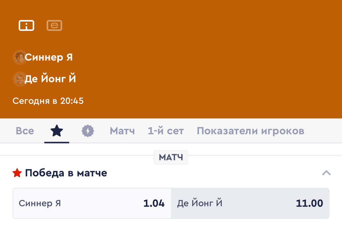 Как ставить, если FOMO берёт верх, а букмекер не даёт тебе лёгкой победы (пример: Синнер — Де Йонг)