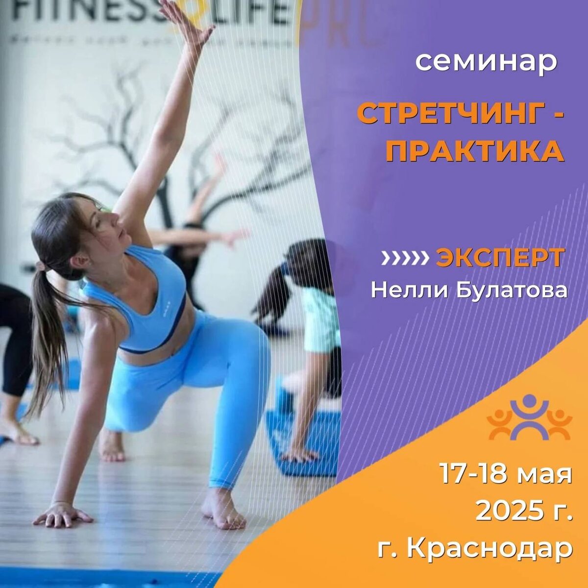 ❌ХВАТИТ ДАВАТЬ СКУЧНЫЕ УПРАЖНЕНИЯ Пришло время вывести гибкость твоих клиентов на абсолютно новый уровень и сделать каждое занятие взрывным! 17-18 мая в Краснодаре состоится БАЗОВЫЙ СЕМИНАР "СТРЕТЧИНГ - ПРАКТИКА" от Нелли Булатовой – элитного тренера Orange Fitness с 11-летним стажем, мастером спорта по акробатике и презентером Global Fitness 2023! Только представь: ты будешь владеть всеми секретами эффективного стретчинга, научишься составлять убойные программы и проводить занятия, от которых клиенты будут в восторге и приведут друзей! На семинаре ты получишь: 🧩 Четкую теорию и грамотную терминологию. 🧩 Пошаговую методику создания продающих групповых уроков. 🧩 Полное погружение во все виды стретчинга. 🧩 Разбор ключевых упражнений до мельчайших деталей. 🧩 Навык составлять разнообразные и цепляющие планы тренировок. 🧩 Практику проведения настоящего урока под руководством профи! И это еще не все! В пакете участника: методичка, сертификат, запись урока, чат поддержки, помощь в